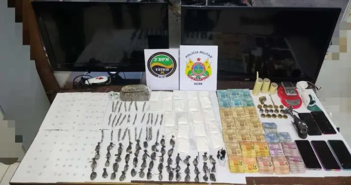 Uma denúncia anônima resultou na apreensão de mais de meio quilo de drogas e R$ 19.743,25 no bairro Placas, em Rio Branco. A ação policial foi coordenada por militares do Terceiro Batalhão de Polícia Militar (3° BPM) e ocorreu na tarde de segunda-feira, 28 de fevereiro. Foram presos dois homens e duas mulheres. Também foi conduzido à delegacia um adolescente de 15 anos.