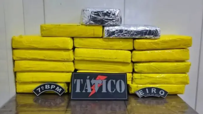 Policiais Militares do 7°BPM aprenderam cerca 20,950 kg de cocaína durante uma abordagem a um ônibus que faz a linha entre os municípios de Tarauacá e Cruzeiro do Sul.