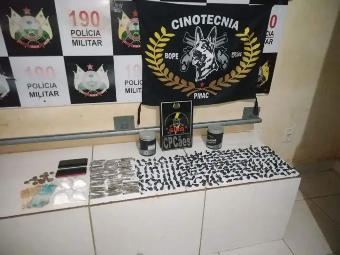 Os cães localizaram mais 204 gramas de cocaína em quatro sacos e 64 tabletes de maconha. O casal recebeu voz de prisão e foi encaminhado à delegacia para serem tomadas as demais providências cabíveis ao caso.