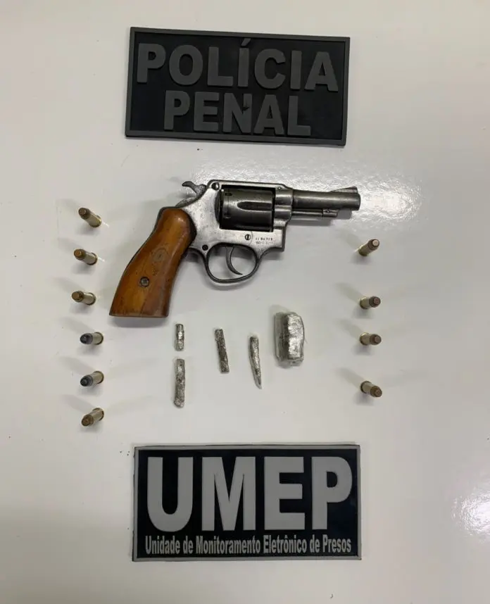 A Polícia Penal por meio da Unidade de Monitoramento Eletrônico de Presos (UMEP) do Presídio Evaristo de Moraes, em Sena Madureira, tirou de circulação um homem que era monitorado por tornozeleira eletrônica, pelo crime de posse ilegal de arma de fogo e entorpecentes neste domingo (27).