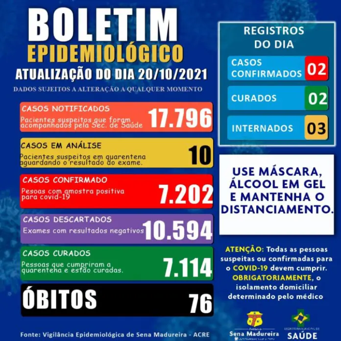 Após vários dias sem registrar casos de covid-19, o município de Sena Madureira voltou a ter casos confirmados e moradores internados por conta da doença.