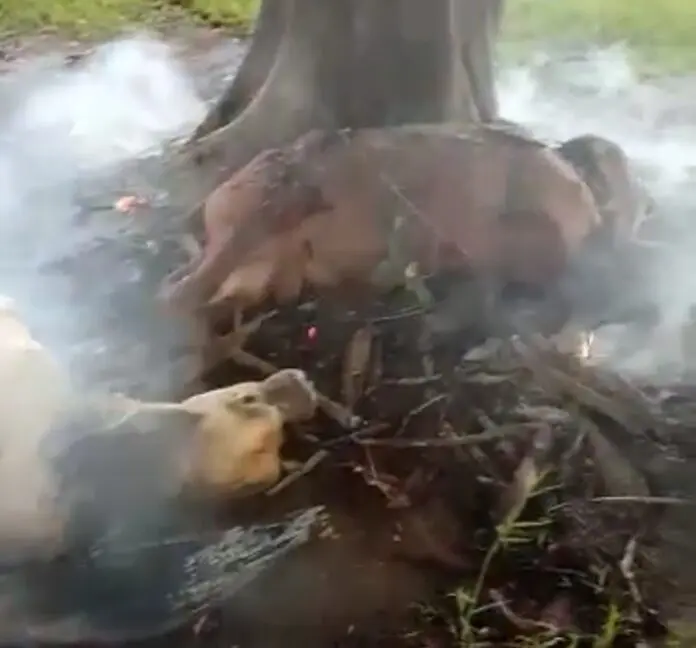 Durante o vídeo, percebe-se o tronco de uma árvore ainda em chamas, e os bovinos caídos ao lado. Por essa época do ano, temporais com raios e trovoadas são comuns na região amazônica.